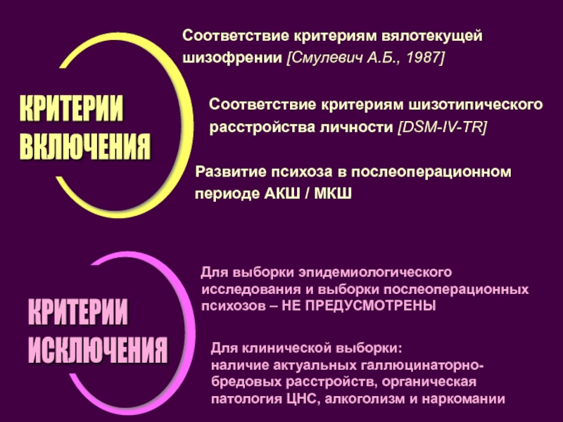 Соответствие критериям вялотекущей шизофрении [Смулевич А.Б., 1987]