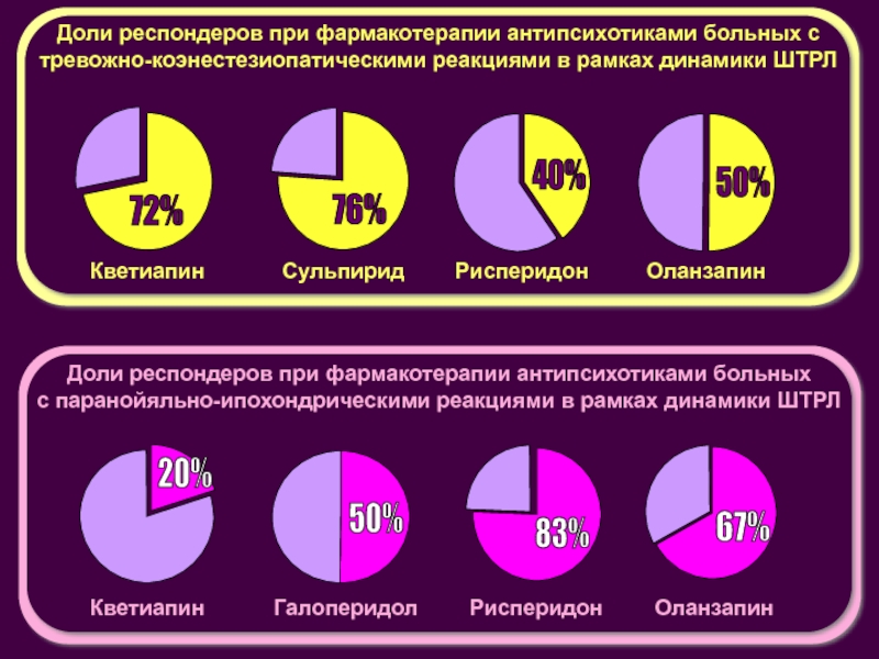 Доли респондеров при фармакотерапии антипсихотиками больных