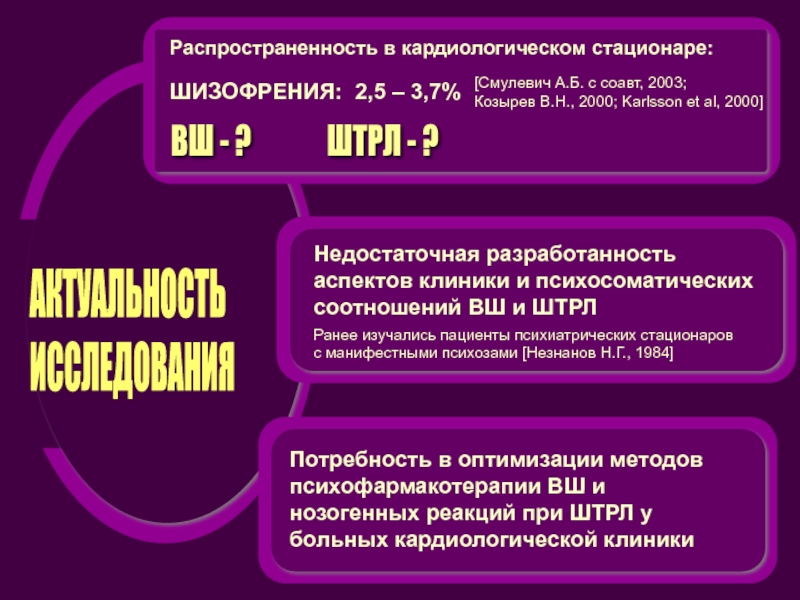 Недостаточная разработанность аспектов клиники и психосоматических соотношений ВШ и ШТРЛ