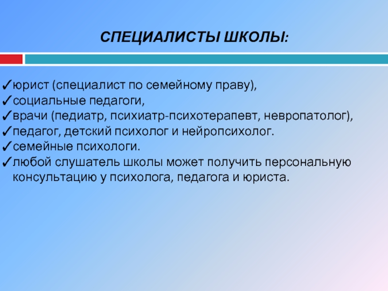 СПЕЦИАЛИСТЫ ШКОЛЫ: