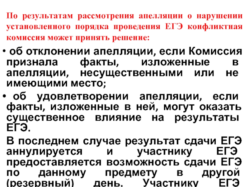об удовлетворении апелляции, если факты, изложенные в ней, могут оказать существенное влияние на результаты ЕГЭ.