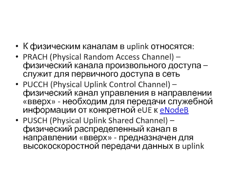 К физическим каналам в uplink относятся: