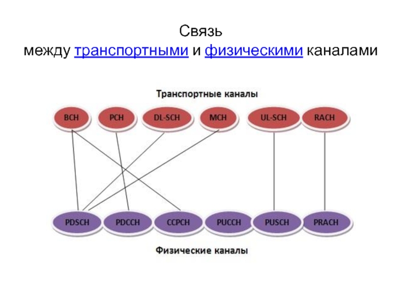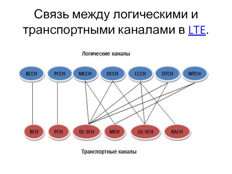 Слайд 39Связь между логическими и транспортными каналами в LTE.
