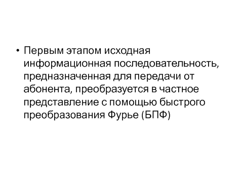 Первым этапом исходная информационная последовательность, предназначенная для передачи от абонента, преобразуется