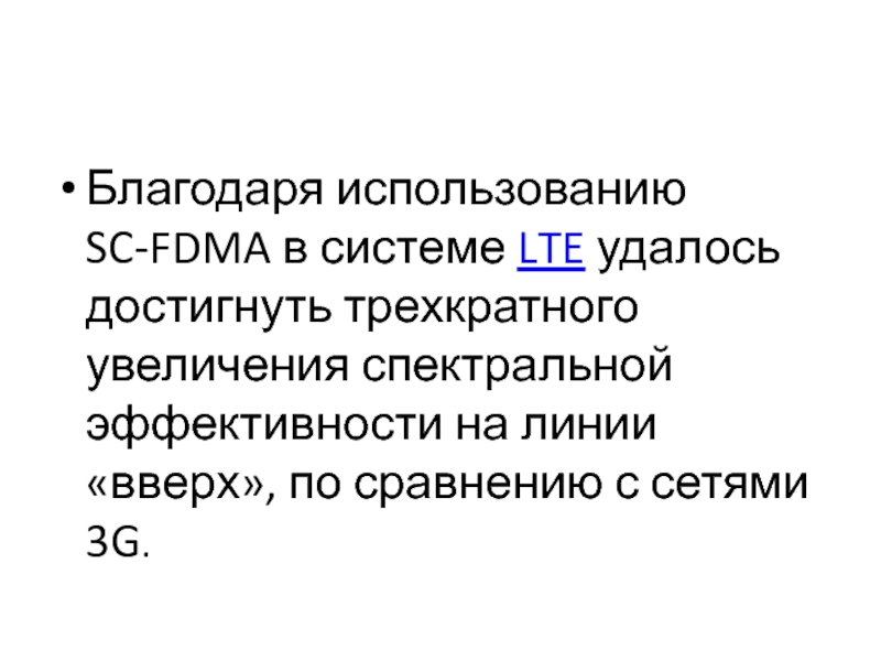 Благодаря использованию SC-FDMA в системе LTE удалось достигнуть трехкратного увеличения спектральной эффективности на