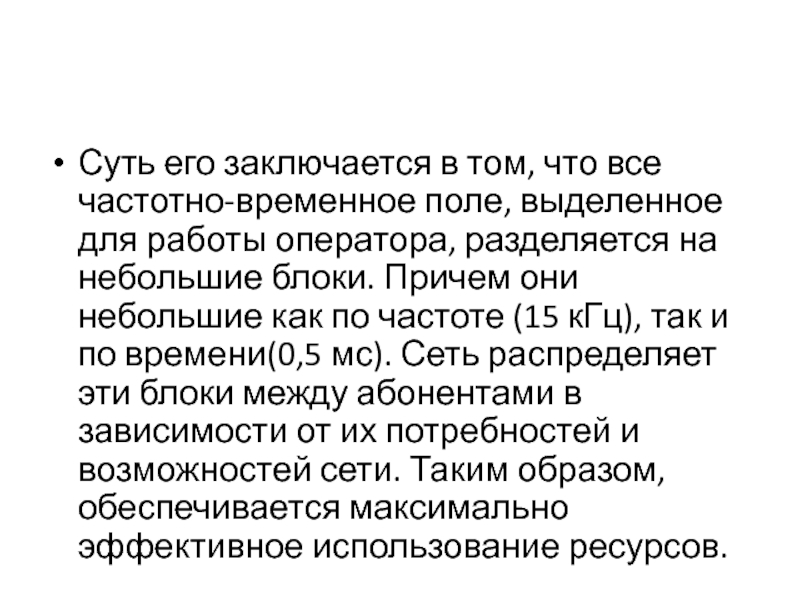 Суть его заключается в том, что все частотно-временное поле, выделенное для