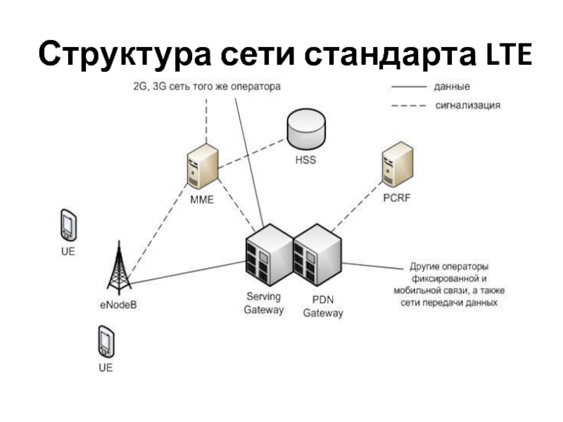 Слайд 5Структура сети стандарта LTE
