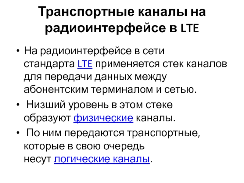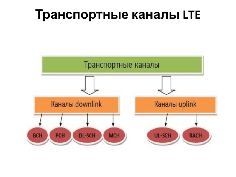 Слайд 34Транспортные каналы на радиоинтерфейсе в LTE