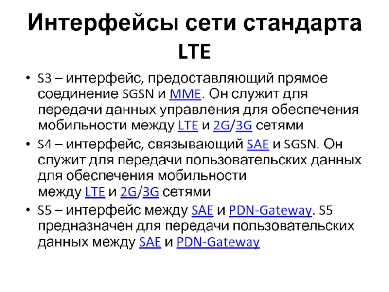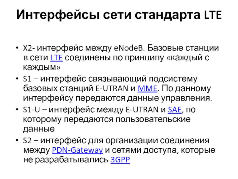 Слайд 13Интерфейсы сети стандарта LTE