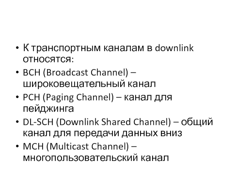 К транспортным каналам в downlink относятся: