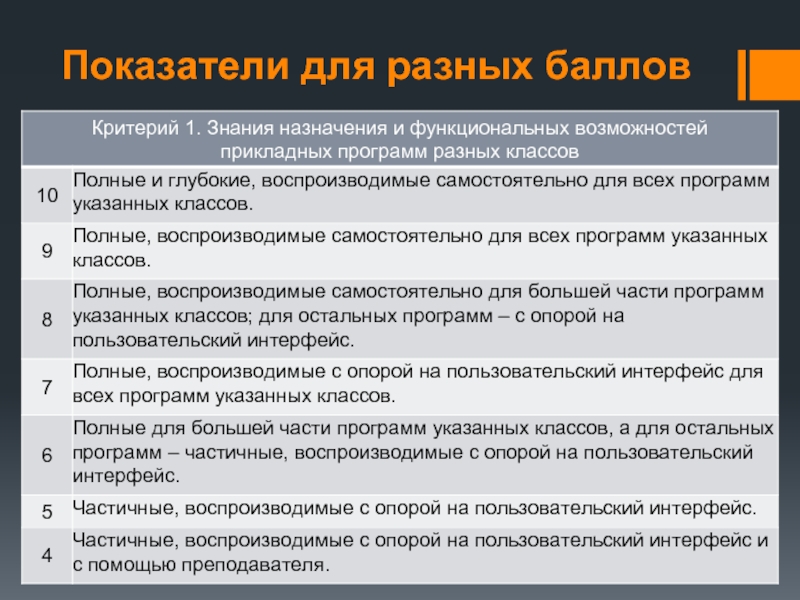 знания назначения и функциональных возможностей прикладных программ разных классов*;