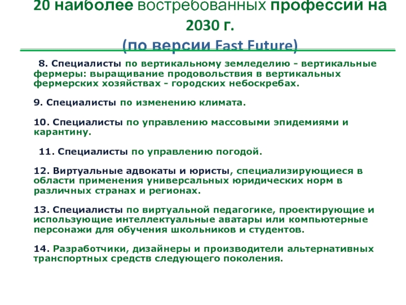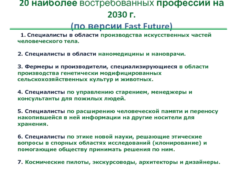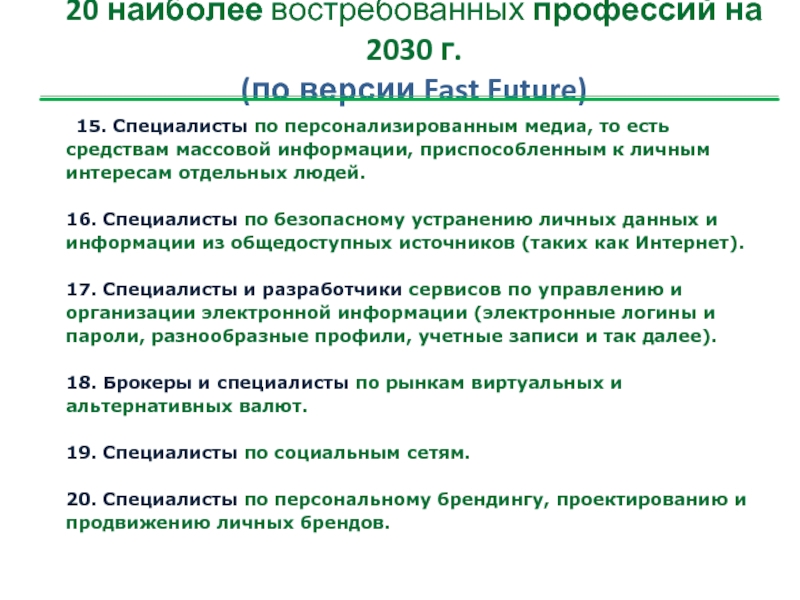20 наиболее востребованных профессий на 2030 г.