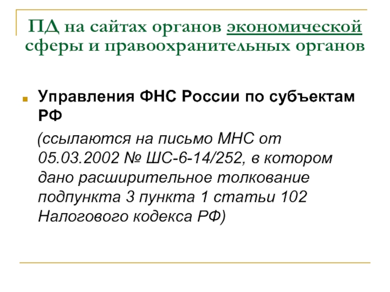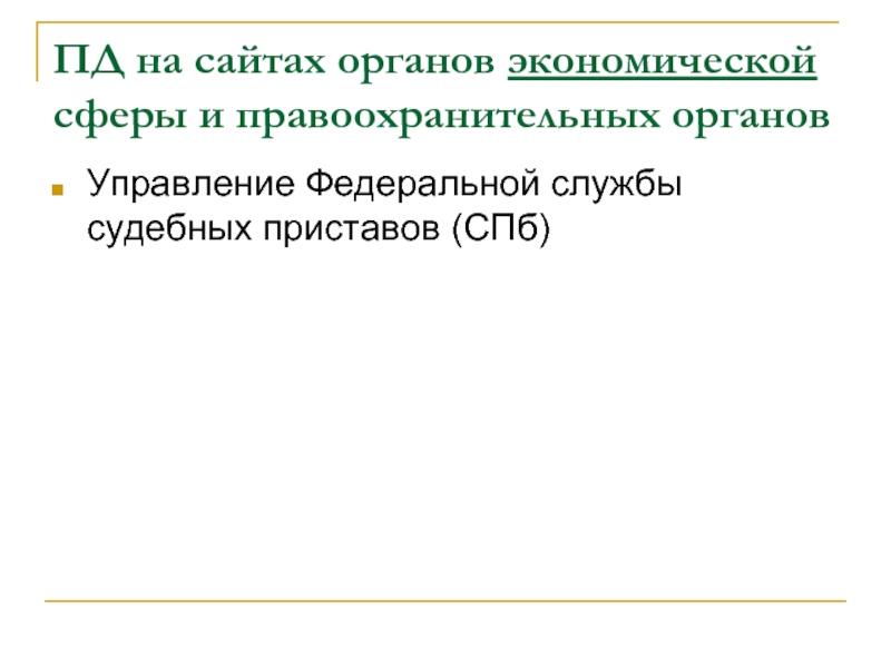 Слайд 8ПД на сайтах органов экономической сферы и правоохранительных органов