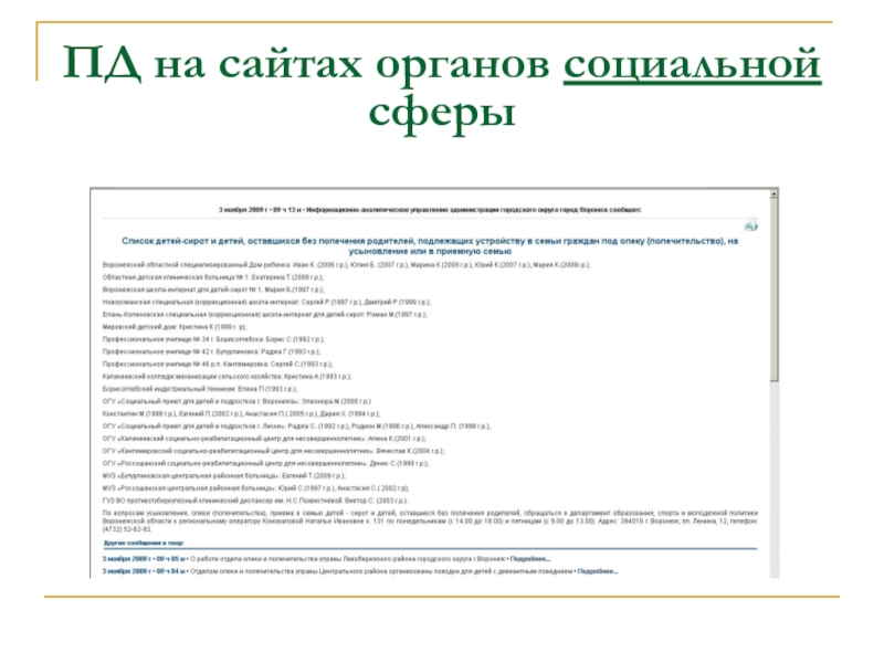 Слайд 9ПД на сайтах органов экономической сферы и правоохранительных органов