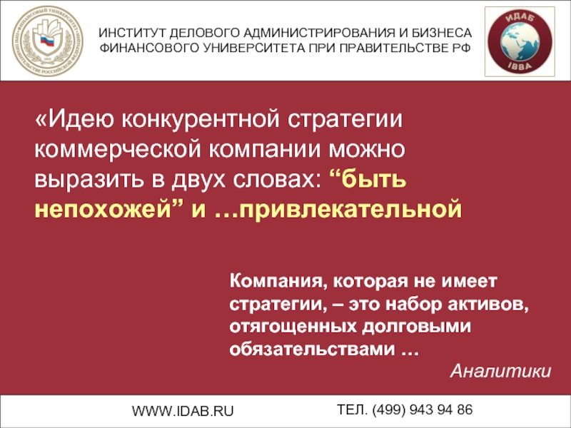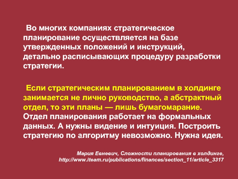 Компания, которая не имеет стратегии, – это набор активов, отягощенных долговыми обязательствами …