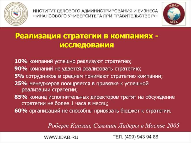 90% компаний не удается реализовать стратегию;