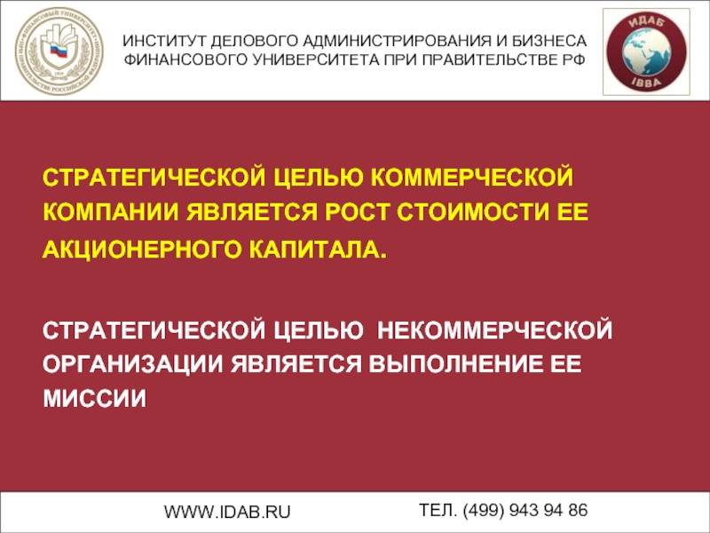 СТРАТЕГИЧЕСКОЙ ЦЕЛЬЮ КОММЕРЧЕСКОЙ КОМПАНИИ ЯВЛЯЕТСЯ РОСТ СТОИМОСТИ ЕЕ АКЦИОНЕРНОГО КАПИТАЛА.