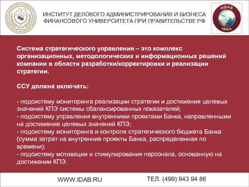 Система стратегического управления – это комплекс организационных, методологических и информационных решений компании в области разработки/корректировки и реализации стратегии.