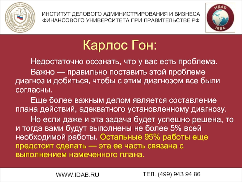 Важно — правильно поставить этой проблеме диагноз и добиться, чтобы с этим диагнозом все были согласны.