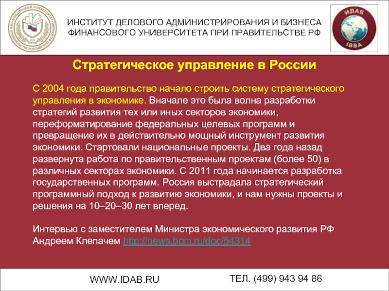 Стратегическое управление в России