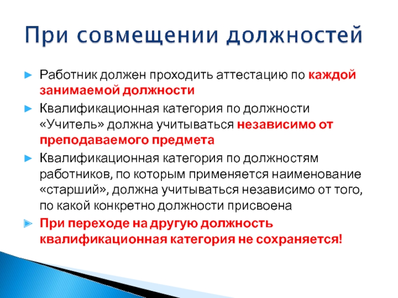 Слайд 11Работник должен проходить аттестацию по каждой занимаемой должности
