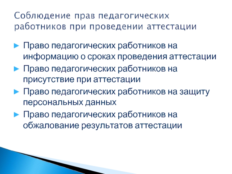Слайд 24Право педагогических работников на информацию о сроках проведения аттестации