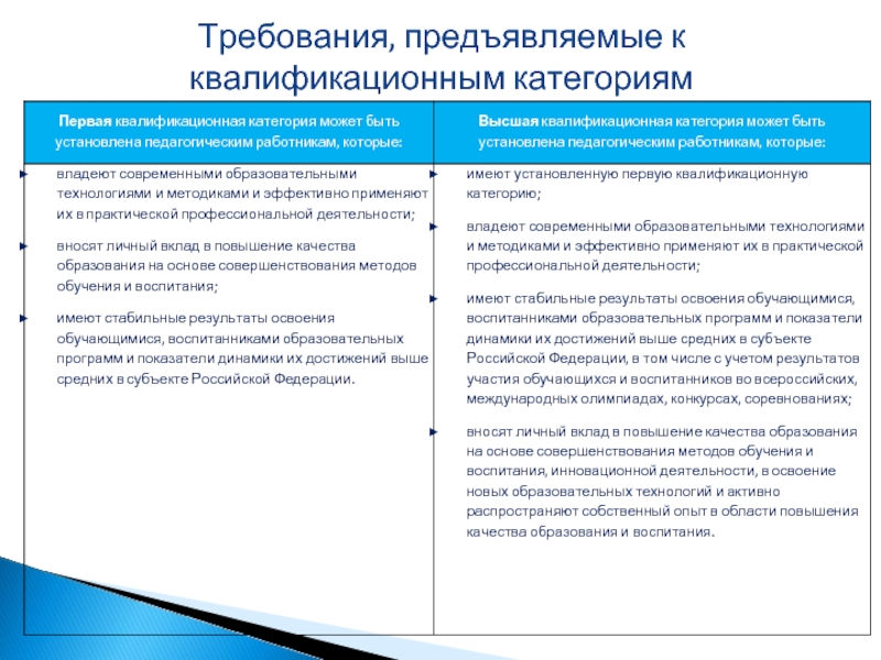Слайд 21Требования, предъявляемые к квалификационным категориям
