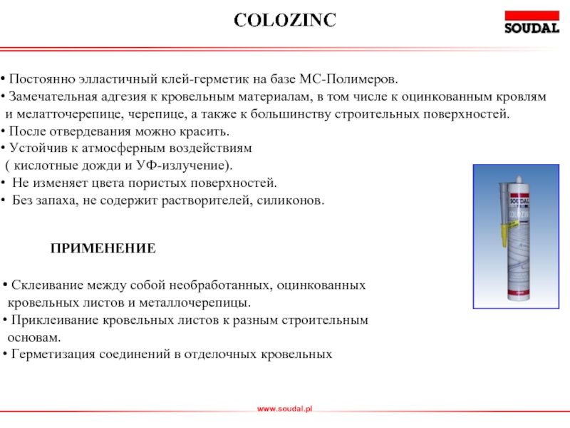 материалам, в том числе к оцинкованным кровлям и мелатточерепице, черепице, а также к большинству строительных поверхностей.