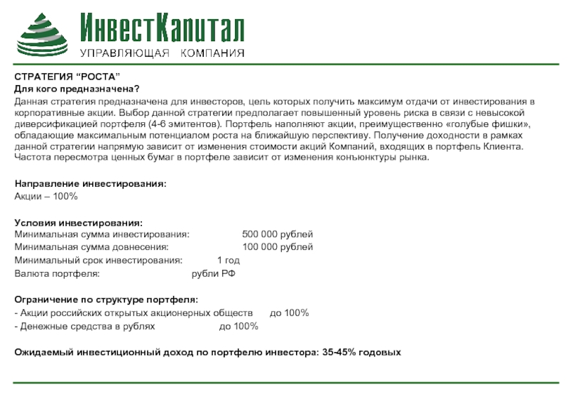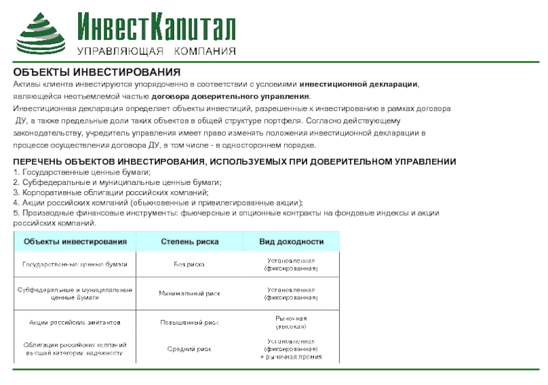 ОБЪЕКТЫ ИНВЕСТИРОВАНИЯ
