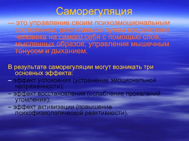 — это управление своим психоэмоциональным состоянием, достигаемое путем воздействия человека на
