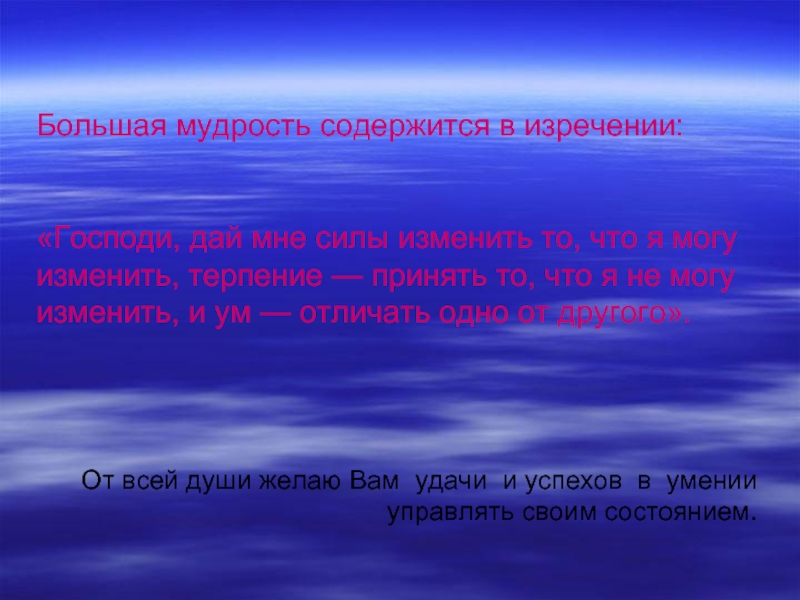 От всей души желаю Вам удачи и успехов в умении управлять своим состоянием.