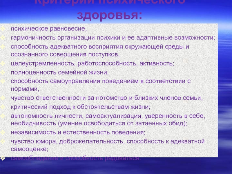 автономность личности, самоактуализация, уверенность в себе, необидчивость (умение освободиться от затаенных обид);