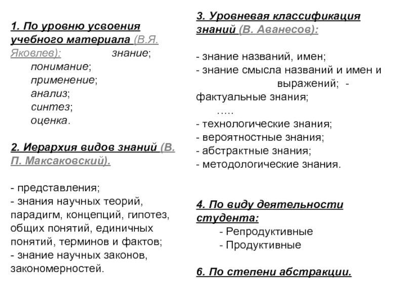- знание смысла названий и имен и выражений; - фактуальные знания;