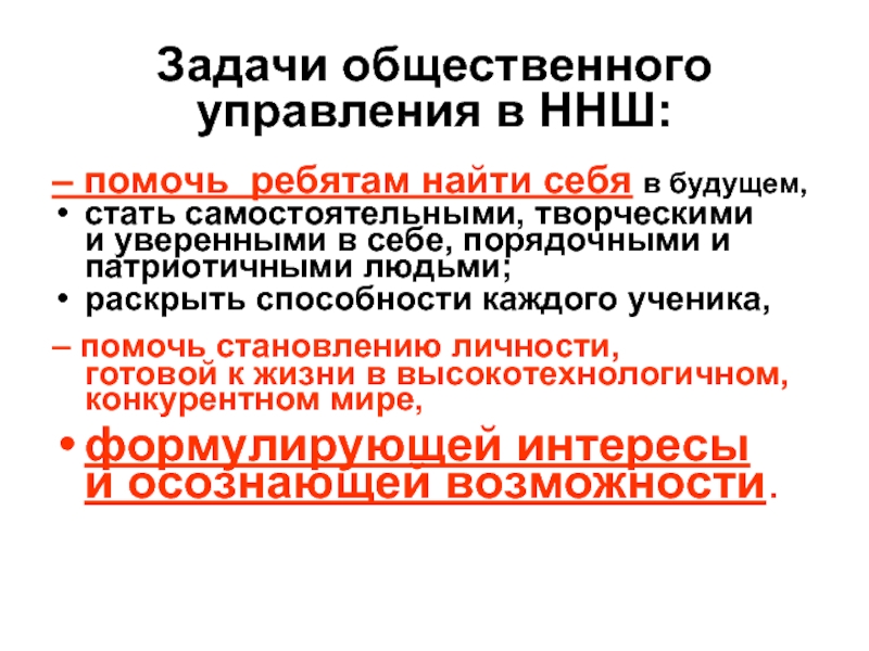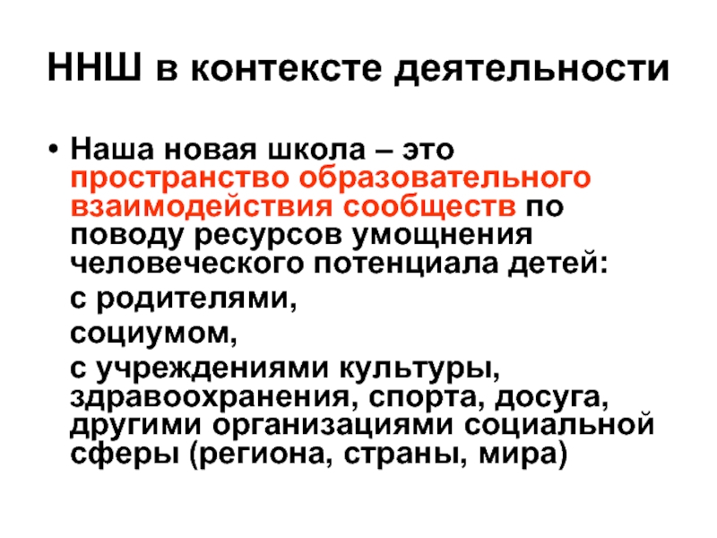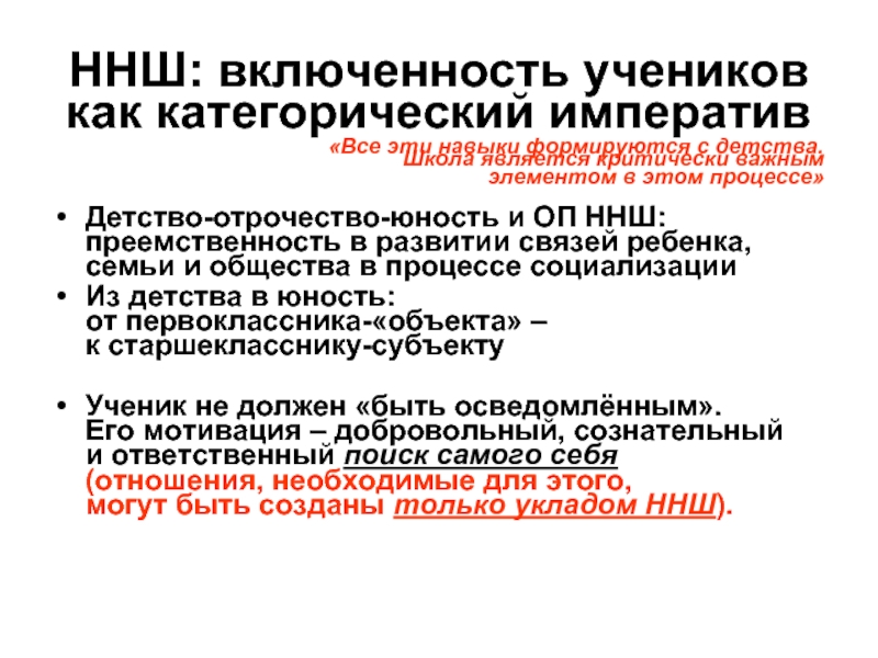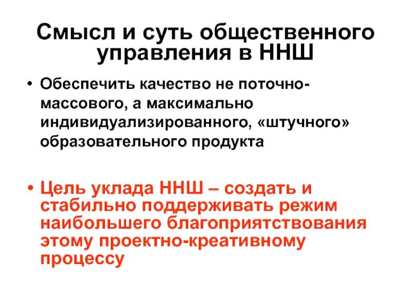 Основа уклада ННШ – в общности целеполагания ее образовательной программы