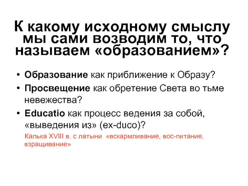 Educatio как процесс ведения за собой, «выведения из» (ex-duco)?