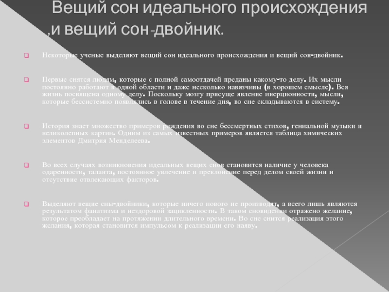 Слайд 12 Вещий сон идеального происхождения ,и вещий сон-двойник.