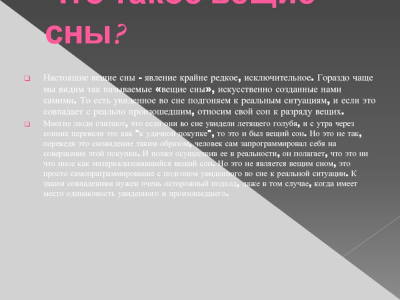 Настоящие вещие сны - явление крайне редкое, исключительное.