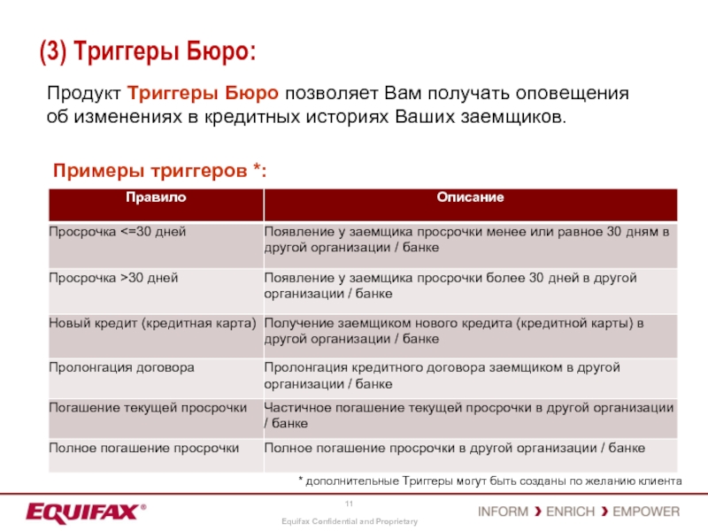 * дополнительные Триггеры могут быть созданы по желанию клиента
