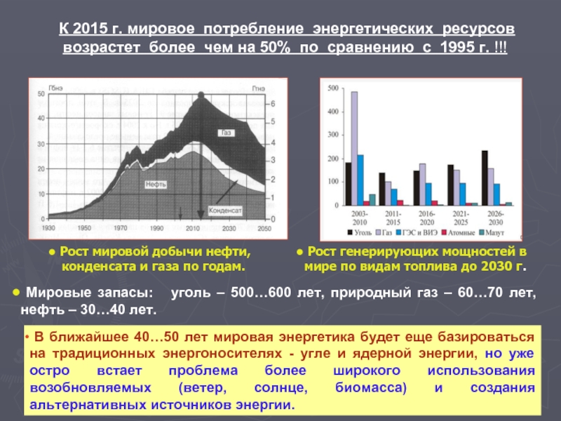 Слайд 9 К 2015 г. мировое потребление энергетических ресурсов возрастет более чем