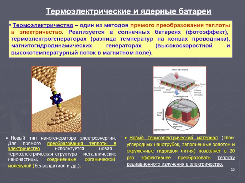 Слайд 32 Термоэлектричество – один из методов прямого преобразования теплоты в электричество.