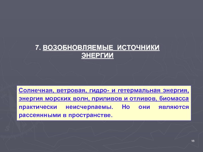 Слайд 167. ВОЗОБНОВЛЯЕМЫЕ ИСТОЧНИКИ ЭНЕРГИИ