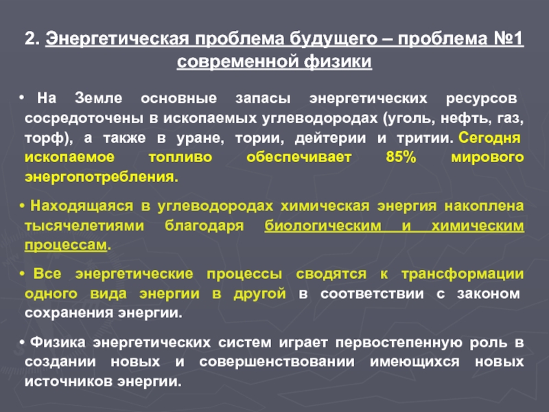 Физика энергетических систем играет первостепенную роль в создании новых и совершенствовании имеющихся новых источников энергии.