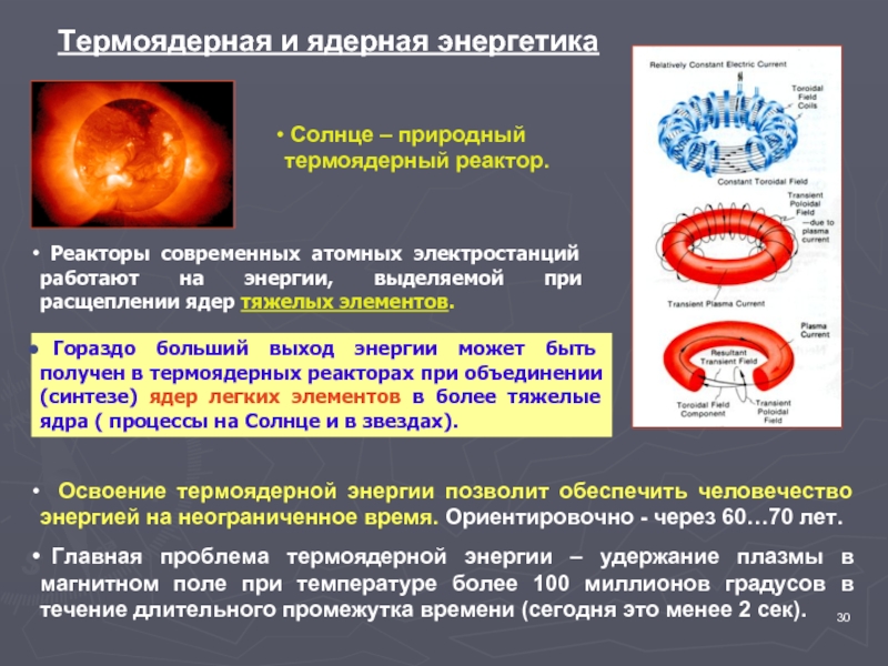 Главная проблема термоядерной энергии – удержание плазмы в магнитном поле при температуре более 100 миллионов градусов в течение длительного промежутка времени (сегодня это менее 2 сек).