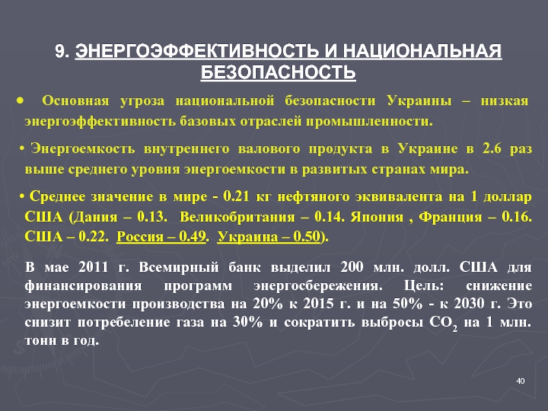Слайд 409. ЭНЕРГОЭФФЕКТИВНОСТЬ И НАЦИОНАЛЬНАЯ БЕЗОПАСНОСТЬ