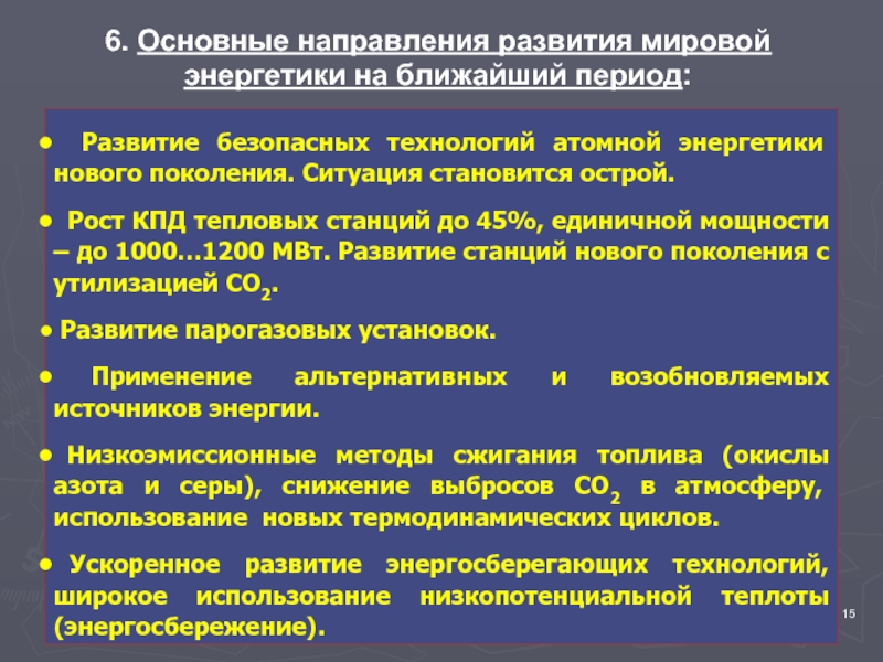 Слайд 156. Основные направления развития мировой энергетики на ближайший период: