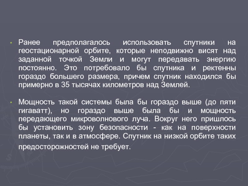 Слайд 39Ранее предполагалось использовать спутники на геостационарной орбите, которые неподвижно висят над