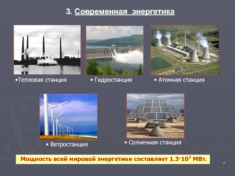 Мощность всей мировой энергетики составляет 1.3·107 МВт.