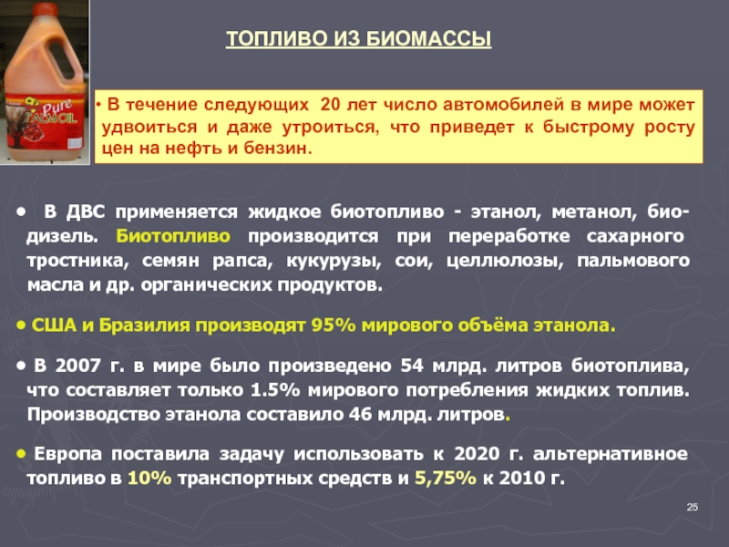 Слайд 25ТОПЛИВО ИЗ БИОМАССЫ