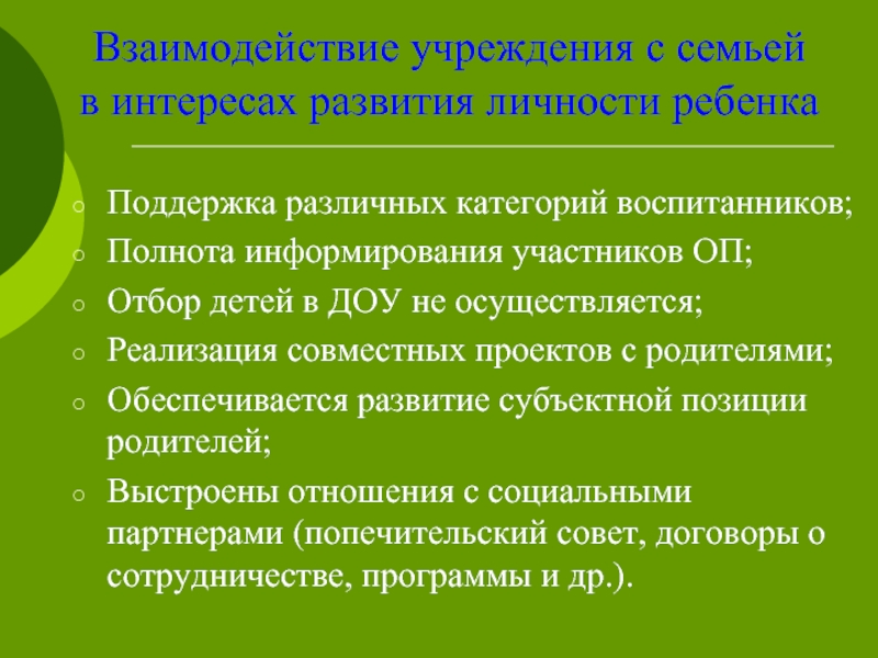 Выстроены отношения с социальными партнерами (попечительский совет, договоры о сотрудничестве, программы и др.).