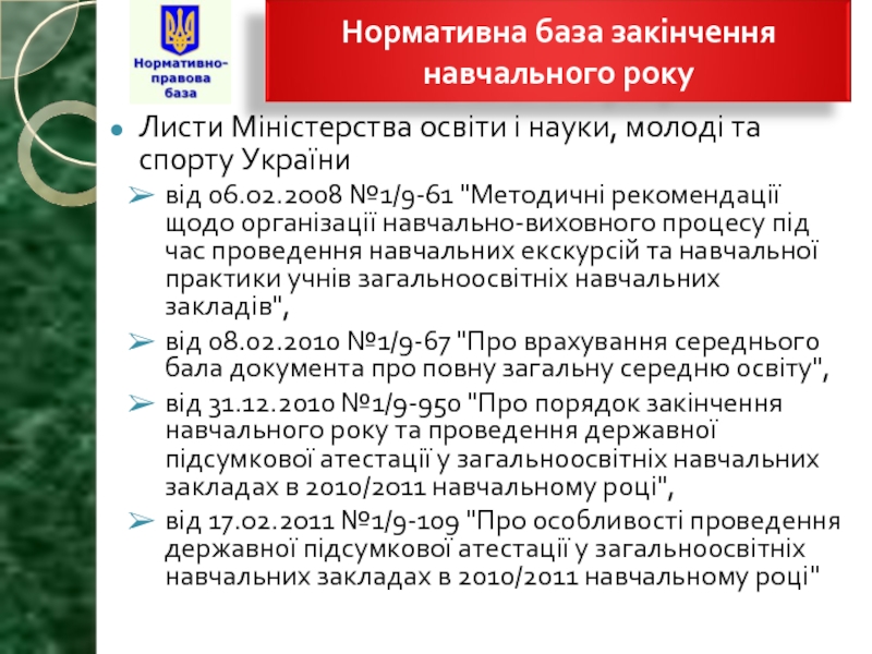 Слайд 19Листи Міністерства освіти і науки, молоді та спорту України